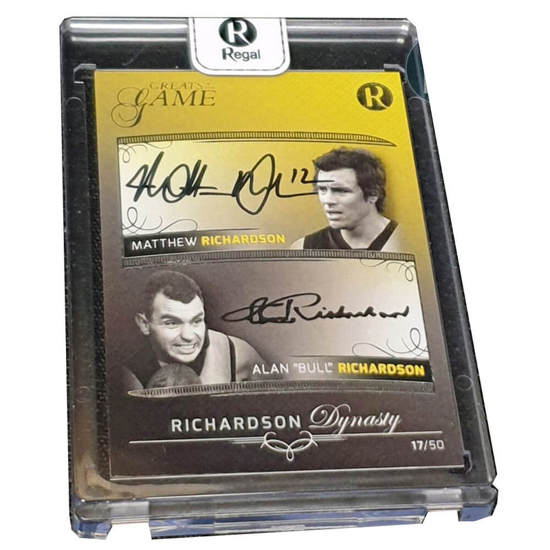 • Regal Trading Cards is proud to announce the release of the Richardson Dynasty Signature Card, together with a 2021 Greats of the Game (Update) Tribute card of Alan "Bull" Richardson.