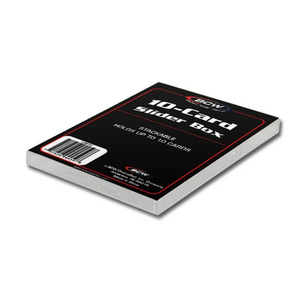 The BCW 2 Piece Slider Box is made of crystal clear, high impact polystyrene and features a friction fit design. Use this box to store, protect and display collectible trading cards like: baseball cards, basketball cards, football cards, Magic The Gathering, Yu-Gi-Oh, Pokemon, and others.