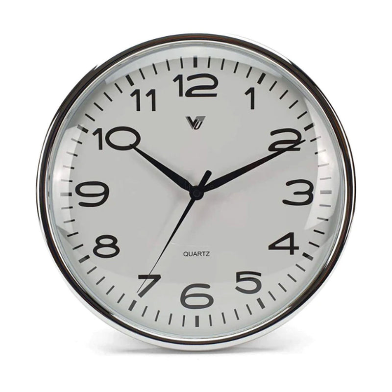If you love the minimalist, sturdy look of white and chrome, then you can't go wrong with this Wall Clock. All clean lines and details, it's bound to bring your space up a level or two while being a durable, easy to maintain timepiece. The domed glass gives the clock more dimension and a respectable look to it, even more so when complimented by the solid black typeface of black numbers set clearly to be visible from across your space.