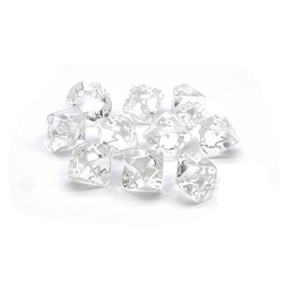 • Ten Sided Die d10 Set - Clear w/ White Translucent (10)