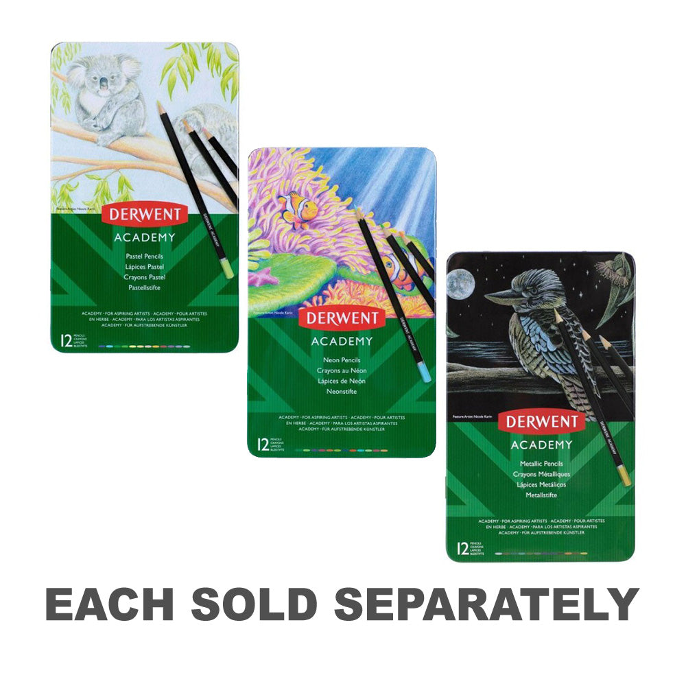 Ideal for colouring, drawing and illustration, Derwent Academy Colour Pencils are easy to use and give you a kaleidoscope of colour at your finger tips. Made with natural wood barrels and quality pigment, to Derwent's exacting standards, these pencils transfer the colour to the paper quickly and evenly.