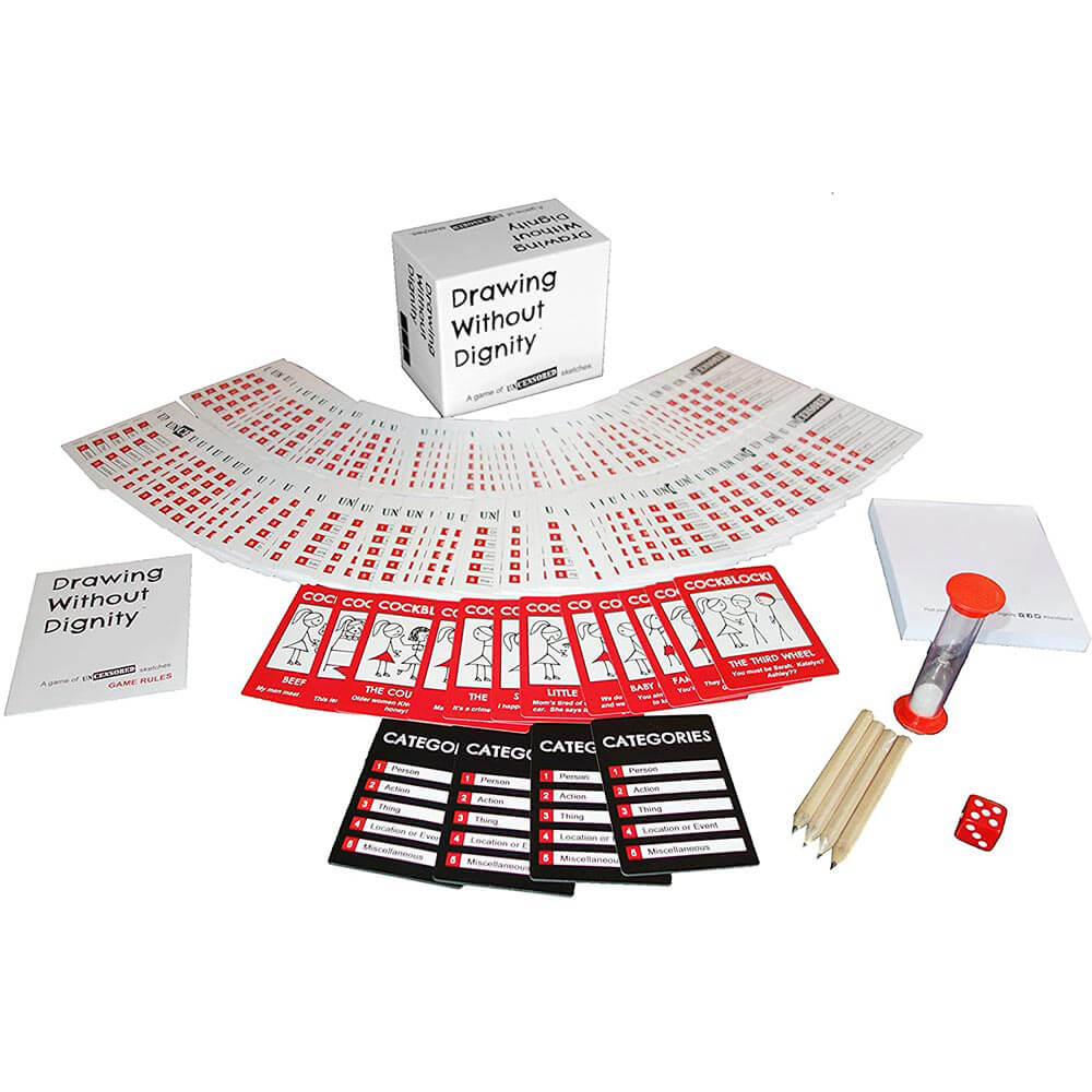 - Drawing Without Dignity is the perfect party game for game night or as a gift. Party time without the kids! Seriously though, this one not for the faint of heart and is for the grown ups only.