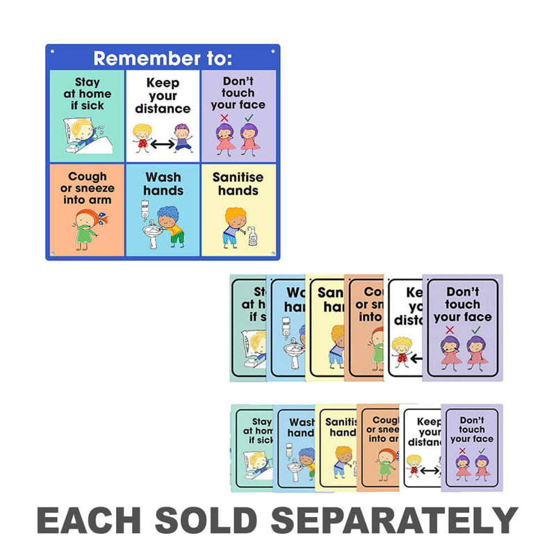 • The messages on these signs include Wash Your Hands", "Sanitise Your Hands", "Keep Your Distance" and more.