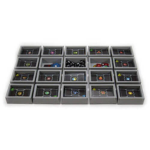 This insert is designed to be compatible with Twilight Imperium 4th Edition®, and has space provided for future expansions. The design provides both efficient storage and improved game play. Many of the trays can be utilised during the game, and they greatly aid set-up and clear-away times. The rules and boards act as a lid on top of the trays.
