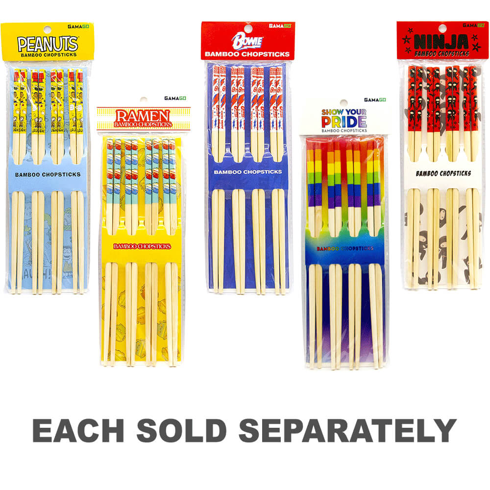 Enjoy your favourite noodle dish with these adorable chopsticks from Gama-Go! Made from 100% natural Bamboo, these chopsticks are reusable and feature a smooth surface to make them easy to grip and perfect for beginners. They are 23cm long and feature a multitude of delicious Ramen bowls just waiting to be devoured. Perfect for Sushi, ramen noodle soup, udon, rice bowls, shabu-shabu, pho, Korean BBQ and much more, impress your friends and family and get a pack today!