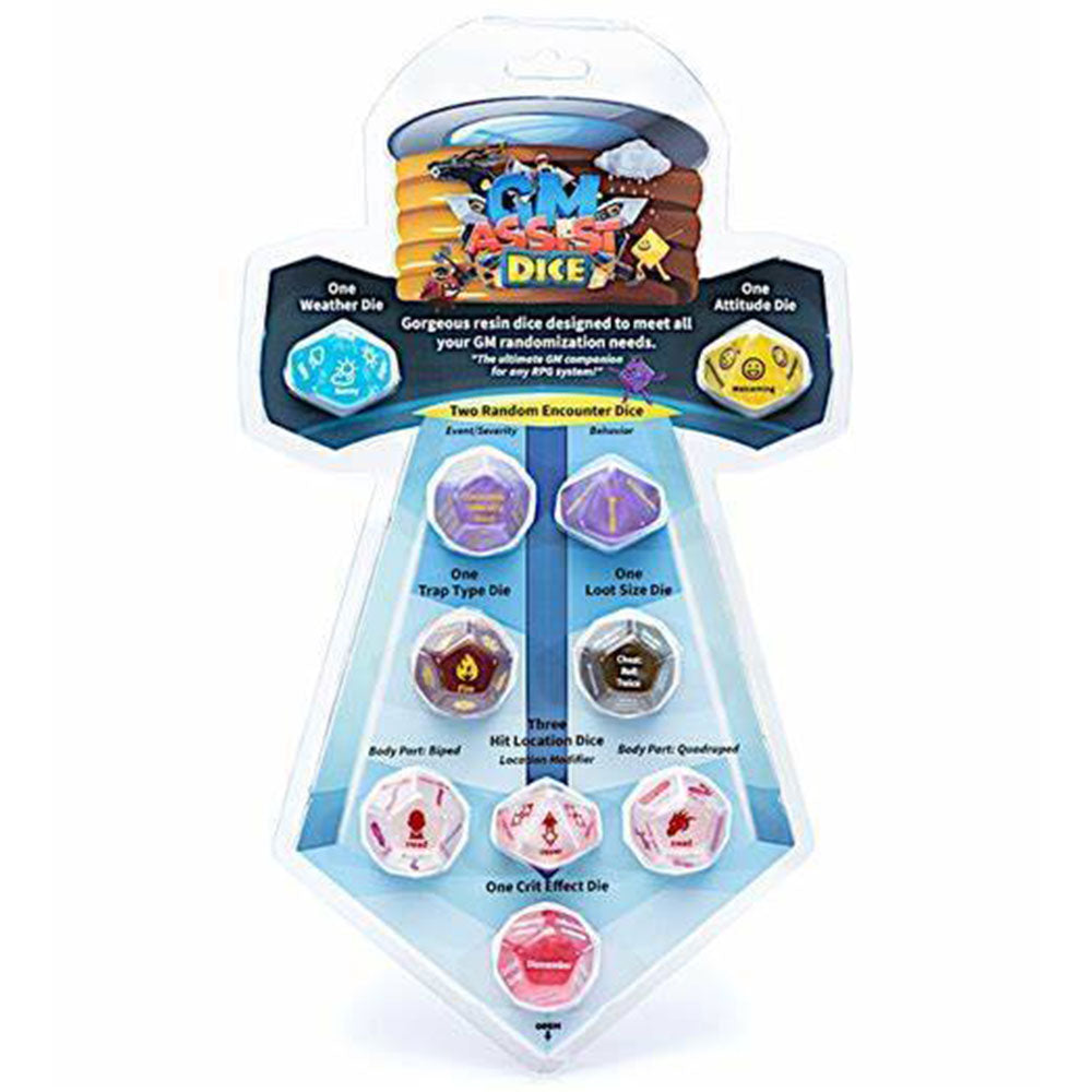• A set of ten (10) gorgeous resin dice custom designed to meet all of your GM randomization and storytelling needs.