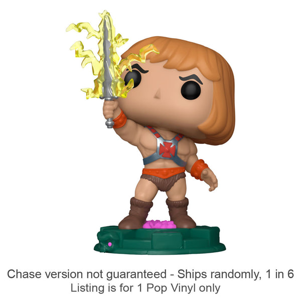 This Pop! Vinyl randomly ships as the chase variant. On average, this occurs 1:6 orders as advised by the manufacturer. Unfortunately, receipt of a chase variant can not be requested or guaranteed. - From Masters of the Universe, He Man, as a stylized Pop!