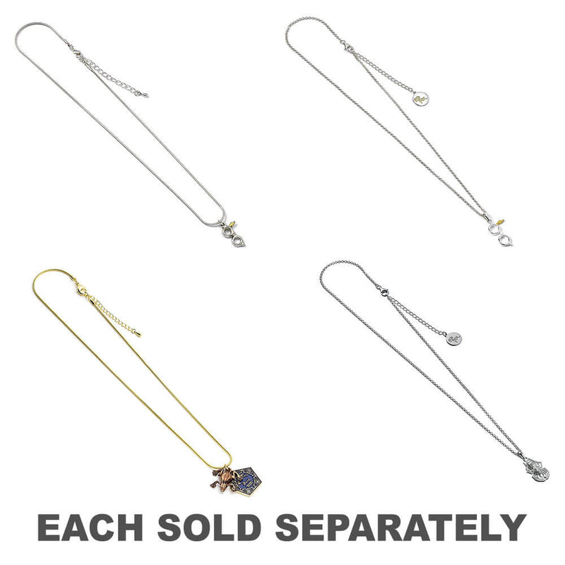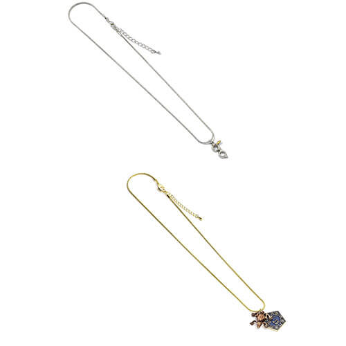 Official Silver Plated Harry Potter Merchandise by The Carat Shop Silver Plated Lightning Bolt with glasses Charm on a Necklace The Necklace is a silver plated chain which is 16 inches in length with a 2.5 inch extender chain. The glasses are Silver plated with a gold plated lightening bolt This necklace comes on official Harry Potter branded card packaging and shows the Warner Bros logo on the reverse The Carat Shop are the official licensed manufacturers of Harry Potter Jewellery on behalf of Warner Bros.