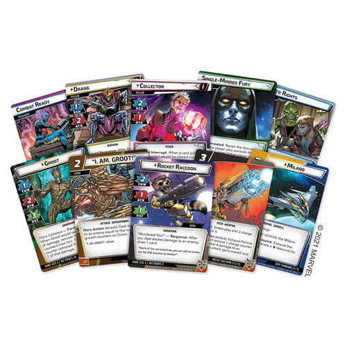 • UNLIKELY HEROES: Within The Galaxy's Most Wanted, you'll find two pre-built hero decks ready to launch you into fighting alongside the Guardians of the Galaxy: Groot and Rocker Racoon.