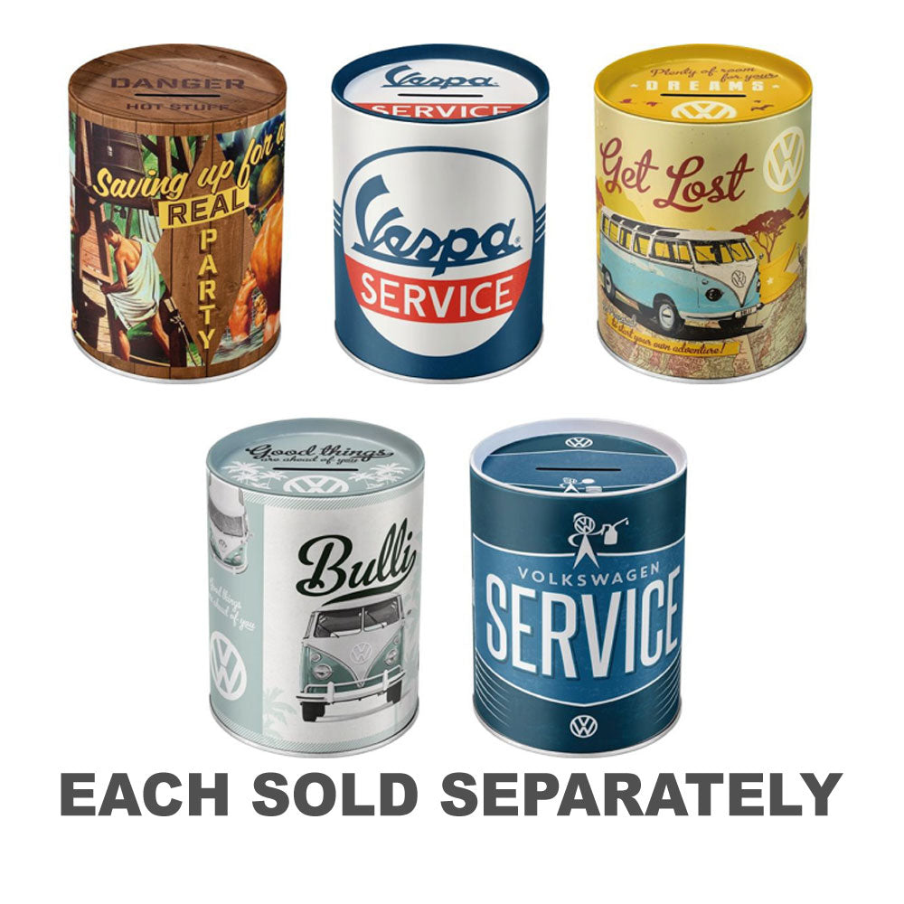 A high-quality money box made from steel sheet metal with removable slotted lid.