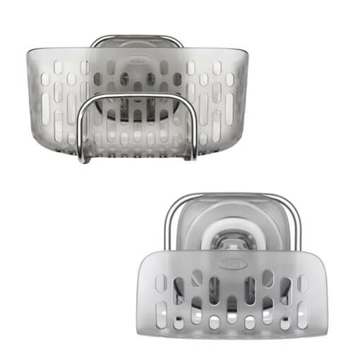 • The OXO Good Grips StrongHold Suction Sink Caddy secures inside sinks to keep counters neat