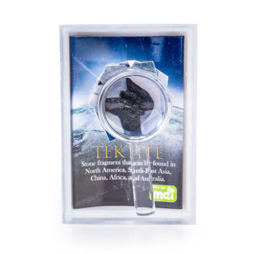 Genuine tektite fragment. Includes a magnifying glass so you can examine your fragment up close!