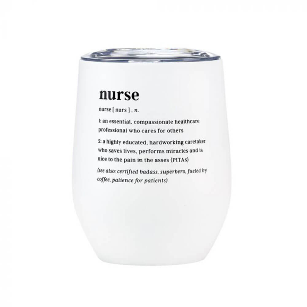 - Caption featured on thermal wine tumbler is a witty take on an original definition of mum