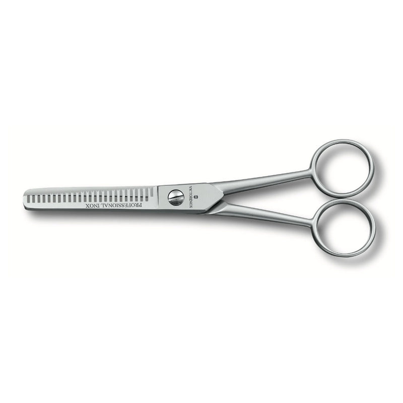 These Victorinox thinning scissors have a total length of 16 cm and coarse teeth. The scissors are made of stainless steel.