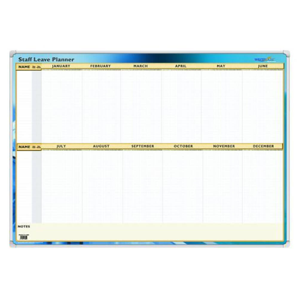 • A perpetual staff leave planner with write-on/wipe-off surface.