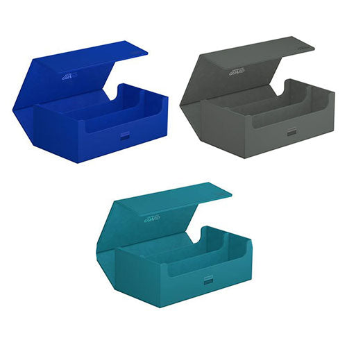 ¡Duplica tu almacenamiento con nuestro Arkhive 800+! Esta caja ofrece espacio para más de 800 cartas de doble funda en tamaño estándar, puede contener 350 Toploaders o sus dos filas pueden simplemente llenarse con una selección de sus cajas y estuches favoritos. Su combinación de colores monocromáticos ofrece un diseño elegante y atemporal para jugadores y coleccionistas. El innovador cierre ZnapClaw mantiene tu colección segura en todos tus viajes.