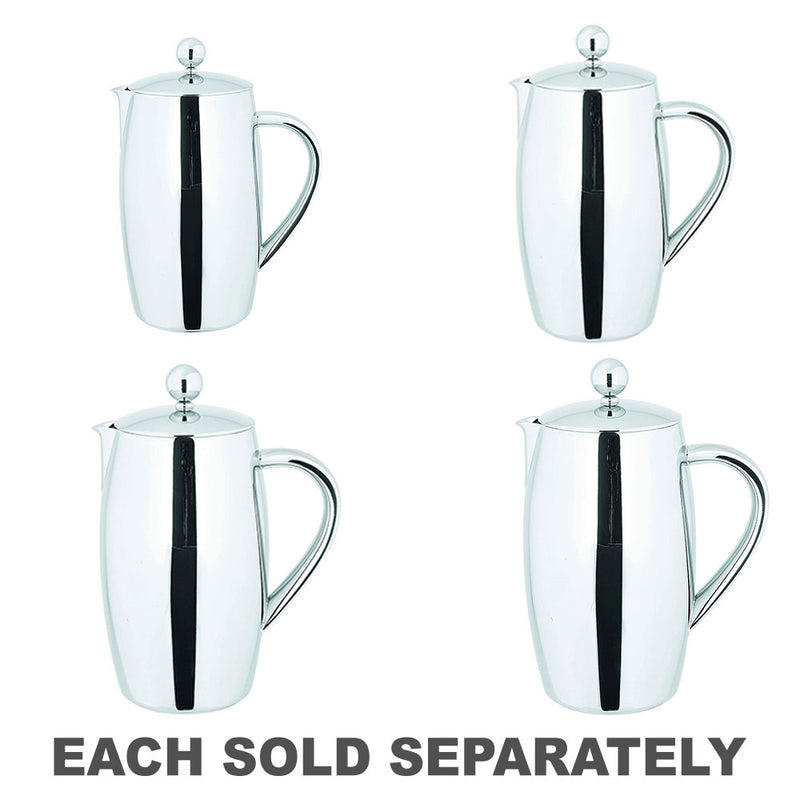 El émbolo de café de doble pared Avanti es el recipiente ideal para filtrar su mezcla de café favorita. Está fabricado con acero inoxidable 18/10 de la más alta calidad y mantendrá su café a la temperatura ideal gracias a su ingenioso diseño de doble pared que retiene el calor. El émbolo de acero inoxidable contiene un filtro de malla fina para una extracción superior del grano de café. El filtro de malla entrega los aceites aromáticos y sabores del café directamente a su taza. Capacidad: 1,2 litros/8 tazas.