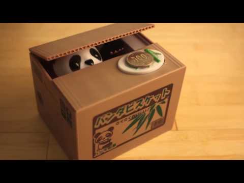 Mientras la tapa está cerrada, coloque una moneda sobre la placa blanca. ¡Mira como la tapa se abre para revelar el lindo y lindo panda que se asoma, luego arrebata la moneda con su pata!