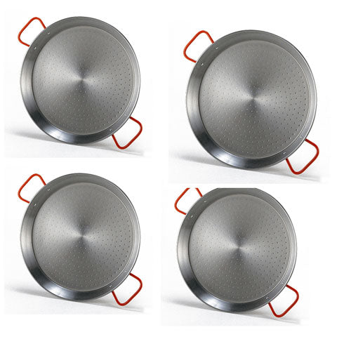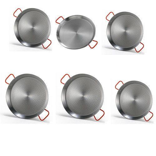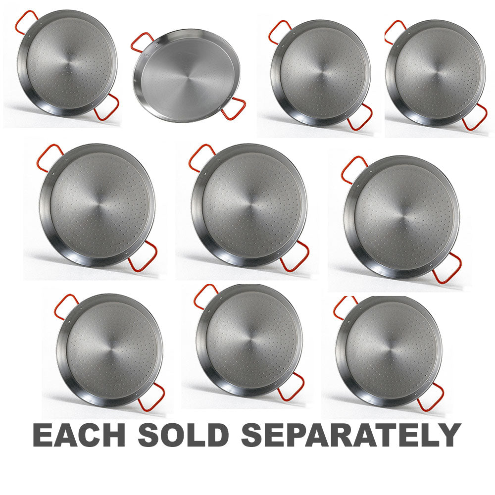 Cree una paella legendaria con esta auténtica sartén hecha en español, para una experiencia de cocina tradicional suprema. Disfrute de hacer la receta más emblemática de España, originalmente inventada por trabajadores rurales y preparado al aire libre con ingredientes estacionales. Ya sea que esté creando una obra maestra vegetariana, mariscos o de carne mixta, las sartenes de paella tradicionales de Garcima están diseñadas para hacer que cocinar este plato delicioso sea muy fácil. El diseño redondo, ancho y bajo de la bandeja de paella permite que los alimentos se cocinen rápidamente a fuego alto, los lados angulados hacen que los ingredientes sean accesibles para agitar y sus manijas de gran tamaño permiten que el hogar se cocine de manera segura y fácil de transferir los alimentos de la cabina a la mesa. Esta bandeja de manejo rojo y manipulado instantáneamente reconocible está hecho de acero pulido delgado y alto en carbono que responde rápidamente a los cambios de temperatura. Adecuado para su uso en estufas eléctricas y de gas, así como en el exterior en una llama abierta o una parrilla de carbón.