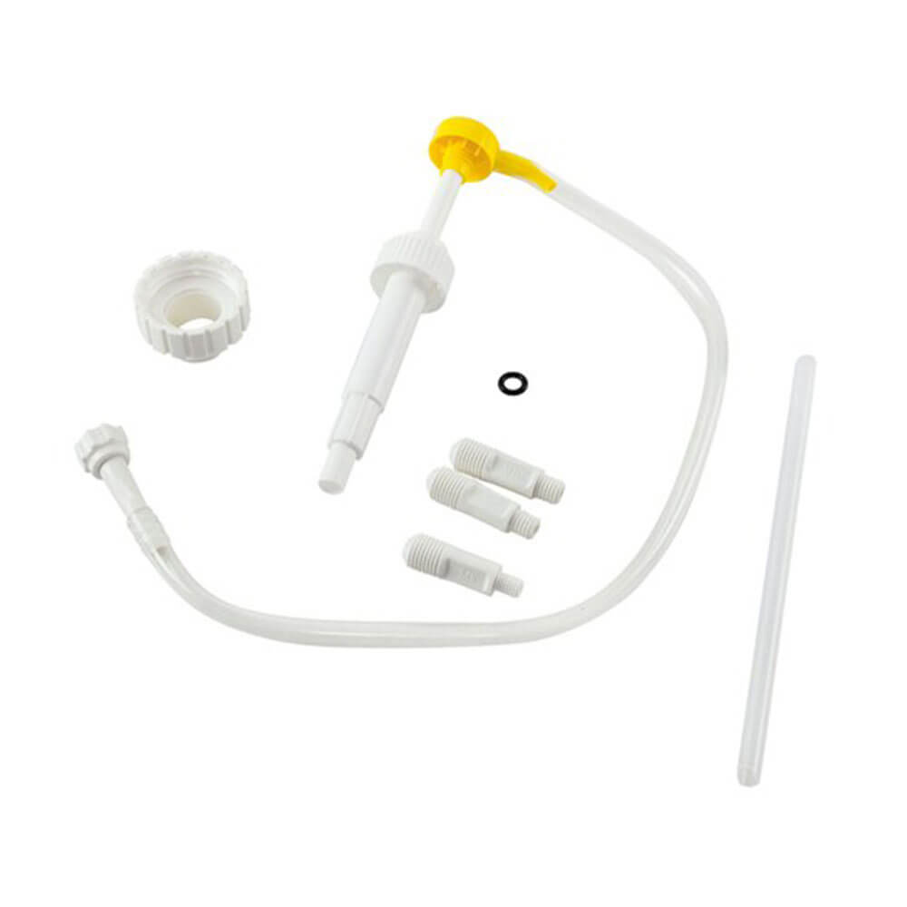 Esta bomba de lubricante universal le permite bombear directamente a la mayoría de las cajas de cambios fueraborda y dentrofueraborda utilizando los adaptadores suministrados. Simplemente enrosque las botellas de lubricante de 946 ml o 3,78 litros y bombee la cantidad correcta de lubricante necesaria sin ensuciar.