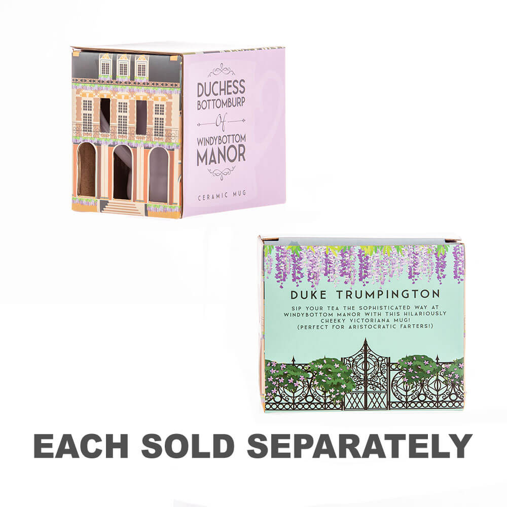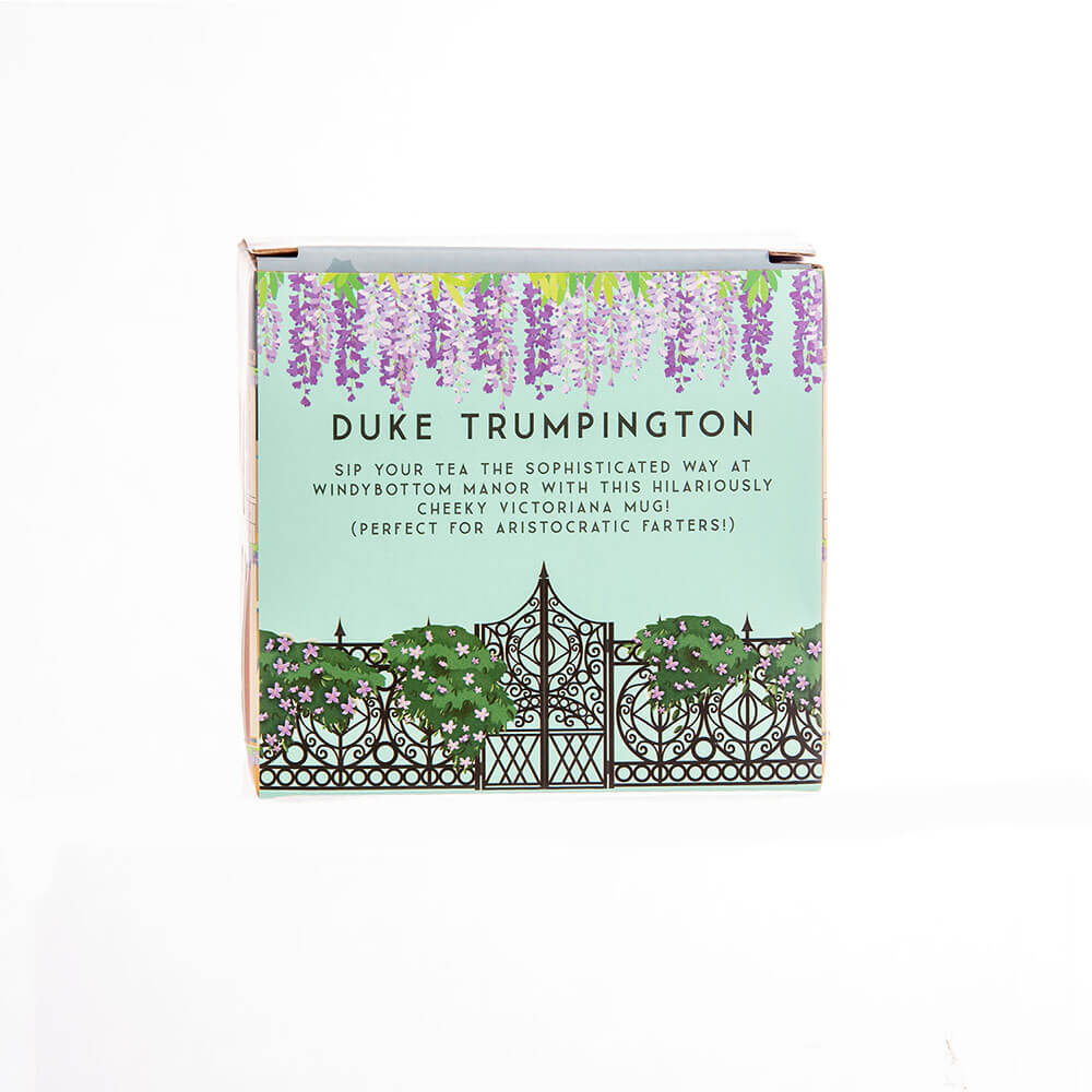 • Lo siento señor ... ¿Qué es ese olor? - ¡Esta hilarante taza de Victoriana Blue 'Duke Trumpington' Victoriana presenta el hilarante texto, 'Duke Trumpington de Windybottom Manor'!