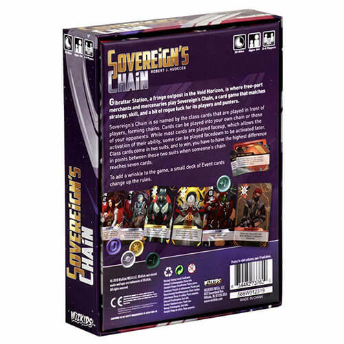 Sovereigns Chain, un juego de cartas estratégico y despiadado, recibe su nombre debido a las cartas de clase que se juegan frente a los jugadores, formando cadenas. Puedes jugar cartas en tu propia cadena o en las de tus oponentes. Las cartas de clase vienen en dos palos, estrellas y planetas, y para ganar, debes tener la mayor diferencia de puntos entre estos dos palos cuando la cadena de alguien llega a siete cartas. Para darle un toque especial al juego, se incluye una pequeña baraja de cartas de Evento, con efectos únicos que cambian el juego por completo.
