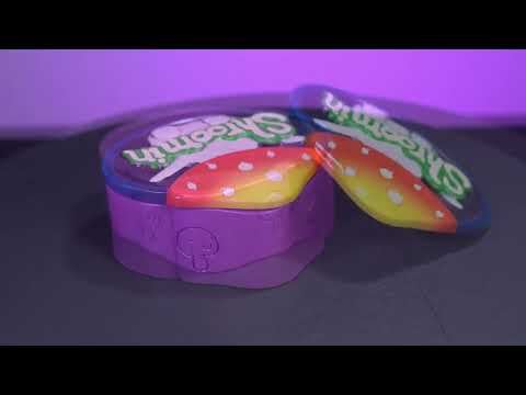 - Presenta un hongo rojo sonriente con la frase punny 'Shroomin'