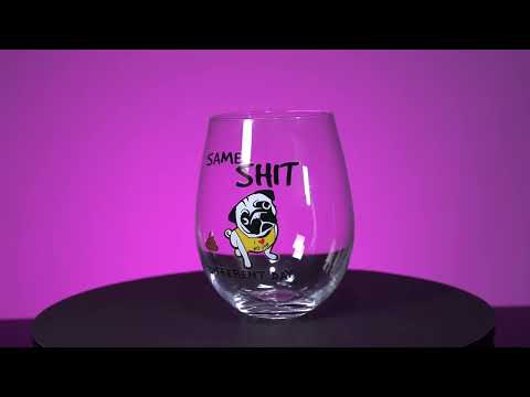 ¡Bebe tu vino de esta copa como la perra jefa que eres! Vidrio sin tallo soplado a mano con atrevidos íconos femeninos de estilo pop art. El texto rojo de la burbuja dice "Boss Bitch"