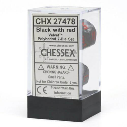 D7 Juego de Troqueles Dados Terciopelo Poliédrico (7 Dados/Negro/Rojo)