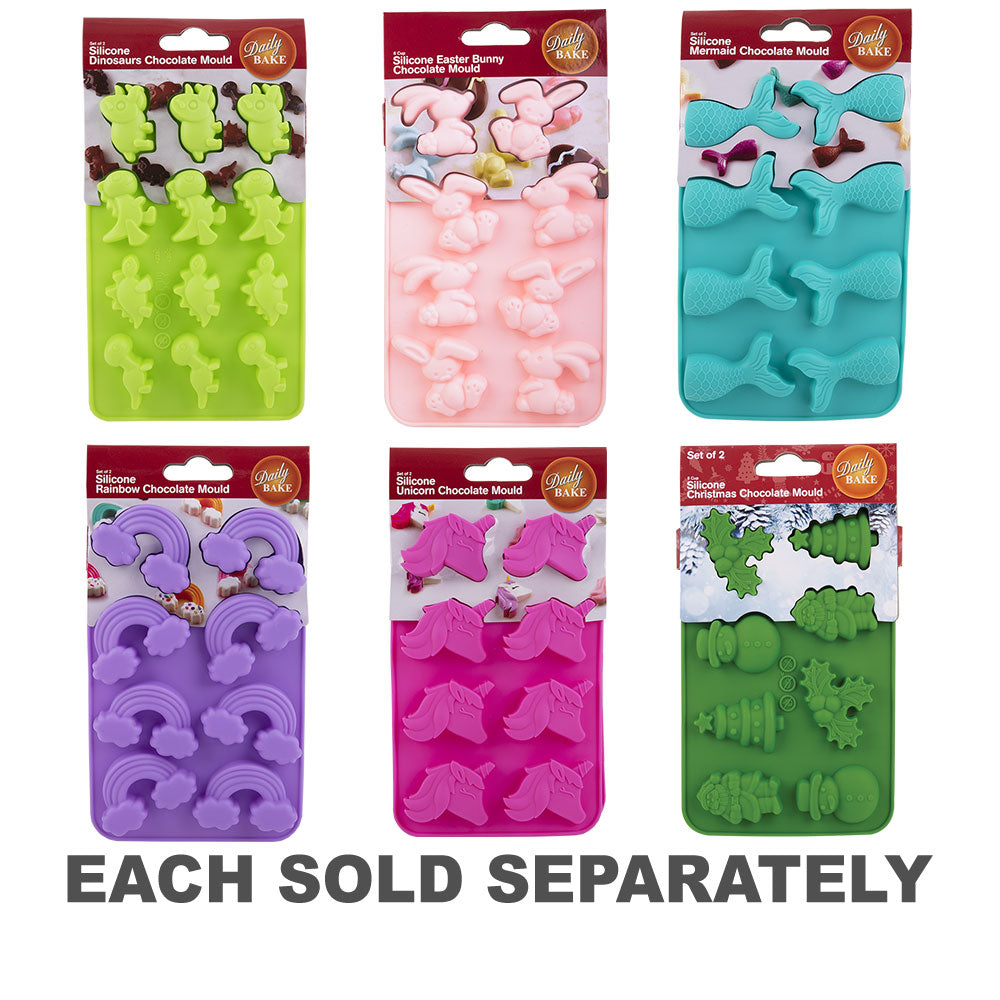 Hechos de silicona de primera calidad, libre de BPA y apta para alimentos, este juego de 2 moldes de chocolate con forma de dinosaurio de 12 tazas de Daily Bake son de excelente calidad para crear tus delicias favoritas con forma de dinosaurio. Especialmente diseñados con vasos moldeados de fácil liberación, estos moldes para chocolate serán un éxito en cualquier cocina.