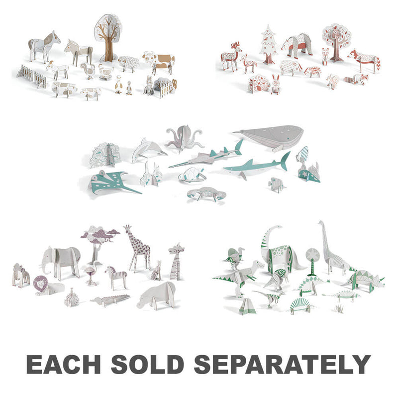 Un kit creativo e interactivo con una variedad de piezas de cartón para colorear y ensamblar, creando una escena del bosque de bosques con animales. Una vez que el componente de diseño y arte de arte es completo, los niños pueden jugar con todos los elementos que hace y ¡es el comienzo de historias fabulosas! Este conjunto es un producto certificado por FSC.