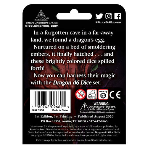 ¡Aprovecha la magia! En una cueva olvidada en una tierra lejana, encontramos un huevo de dragón. Criado en un lecho de brasas humeantes, finalmente eclosionó. . . ¡Y estos dados de colores brillantes se derramaron! Esa es nuestra historia, de todos modos.
