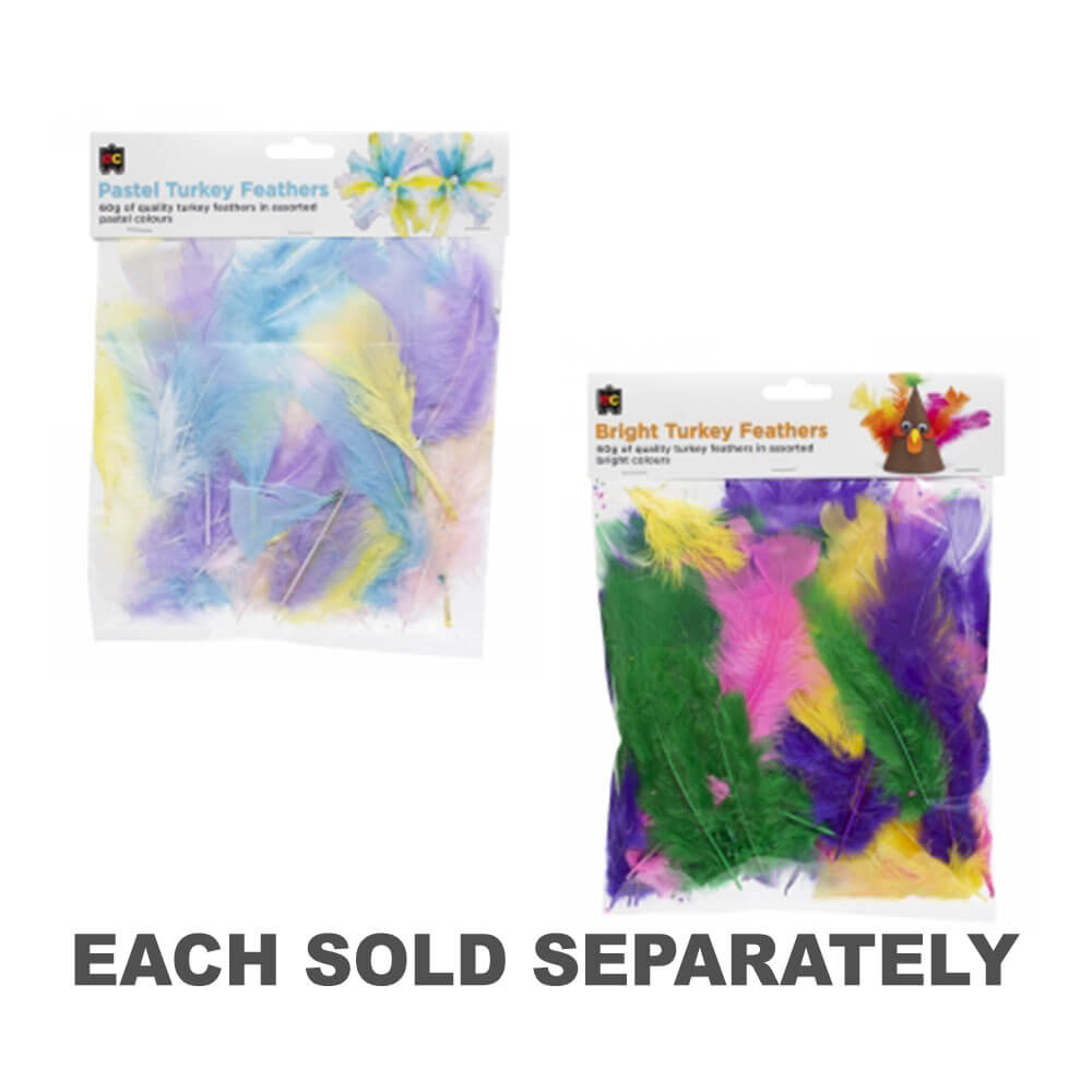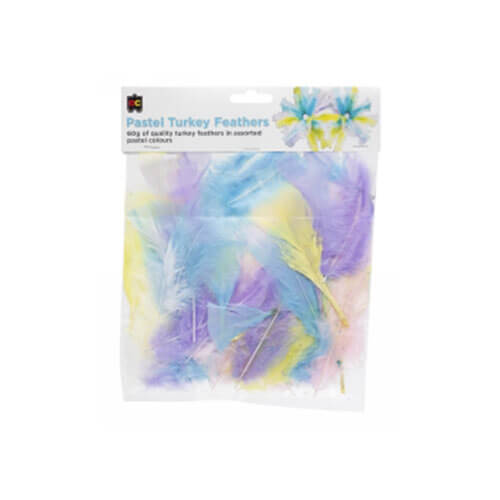 Los paquetes surtidos de plumas de pavo en colores pastel son ideales para una gran variedad de usos artesanales, incluidos collages, creación de tarjetas, disfraces, decoración de máscaras y tocados. Colores pastel en pack de 60g.