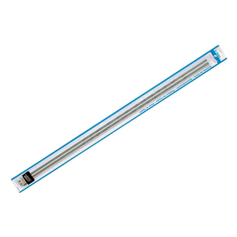 - Esta cuchilla se llama 12 pulgadas pero tiene 370 mm de largo, lo que le brinda espacio para deslizar el cortador hacia adelante y hacia atrás.