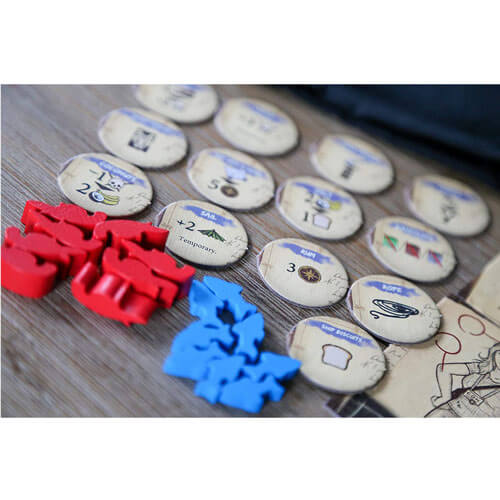 Jugadores dentro de la caja Encontrarás personajes adicionales (jugador y marinero), un conjunto de tripulantes, perros de caza, cartas de rasgos de personaje, cartas de misterio adicionales, cartas de eventos, fichas de descubrimiento, cartas de búsqueda en la playa, fichas de volcán e incluso un catalejo épico. La caza también será más emocionante con las nuevas cartas de Bestias y cartas de Aventuras de caza. El refugio de Robinson tendrá la opción de actualizarse y agregar un jardín y un corral. Treasure Chest también incluirá cuatro escenarios adicionales: Rastreando al Dr. Livingstone, Treasure Island, Poachers y Time Travel.