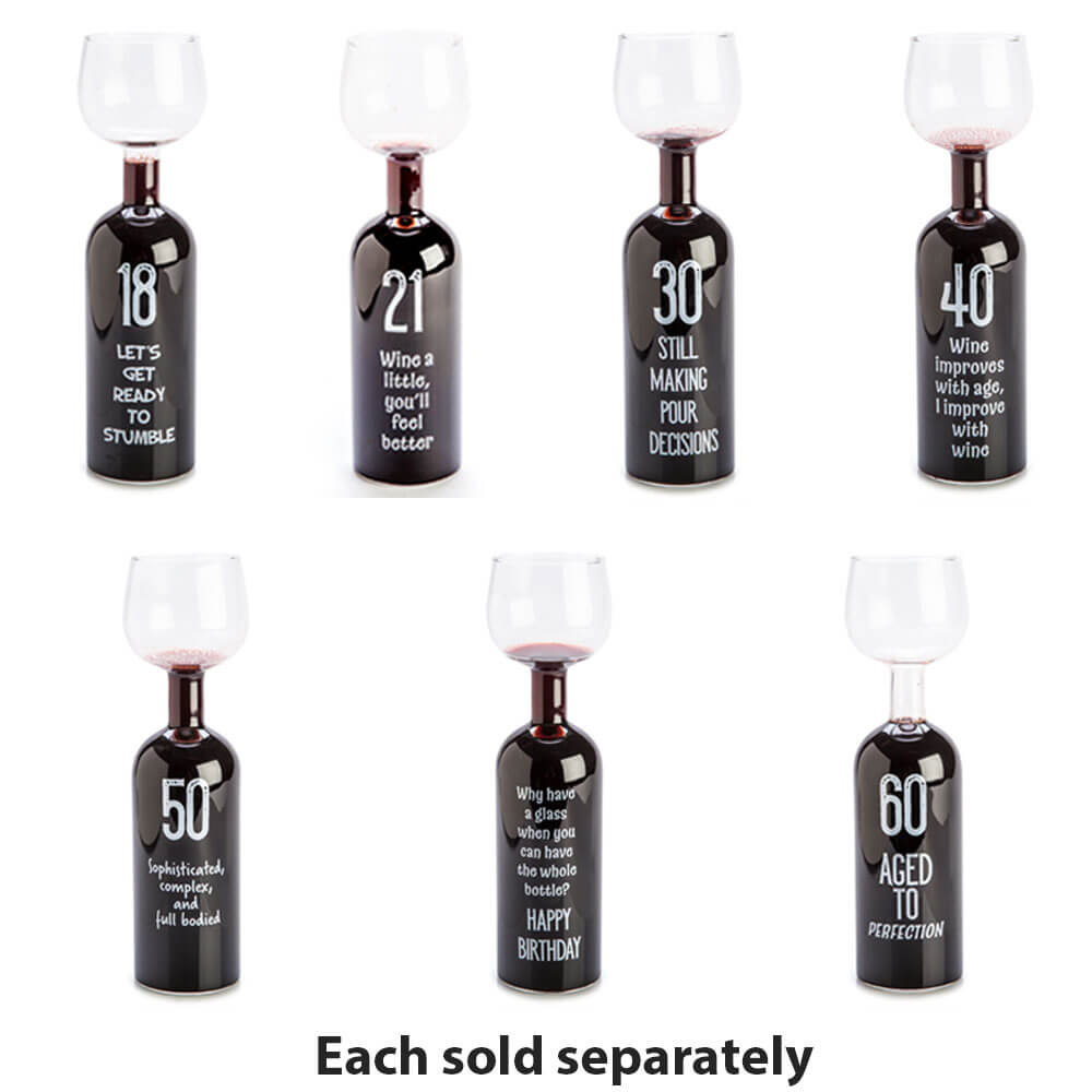 Esta edición de la copa de botella de vino también incluye varias frases de cumpleaños para agregar un toque personal a su regalo. deberes - ¡mensajes de cumpleaños personalizados del 18 al 60! Con una base de botella de vino y una elegante copa de vino encima, es fácil y conveniente beber o incluso servir de la copa de botella de vino Happy Birthday.
