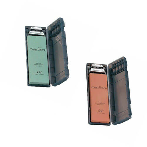 Global recomienda afilar periódicamente sus cuchillos usando una piedra de agua MinoSharp. Entre afilados de piedra, se recomienda utilizar la varilla de diamante o cerámica fina Global para mantener alineados los bordes de los cuchillos