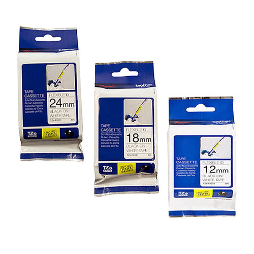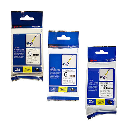 • Etiqueta superficies curvas con hermano negro flexible en cinta blanca