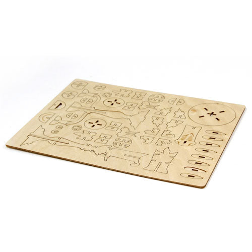 - Perforado: contiene una hoja de madera certificada FSC cortada con láser con piezas fácilmente extraíbles.