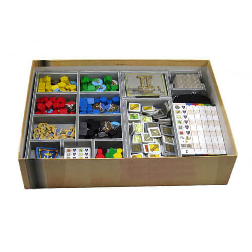 - Este inserto está diseñado para ser compatible con Orleans® e incluye espacio para la 5ta expansión del jugador. El diseño proporciona almacenamiento eficiente y juego mejorado. Muchas de las bandejas se pueden utilizar durante el juego, y ayudan en gran medida a configurar y tiempos claros. Los tableros y los tableros de jugadores actúan como una tapa en la parte superior de las bandejas.