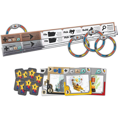 - Gran rejugabilidad: los jugadores barajan los mazos de Gizmos y solo usan una cierta cantidad de ellos en cada juego. Con cada partida, habrá nuevas opciones disponibles.