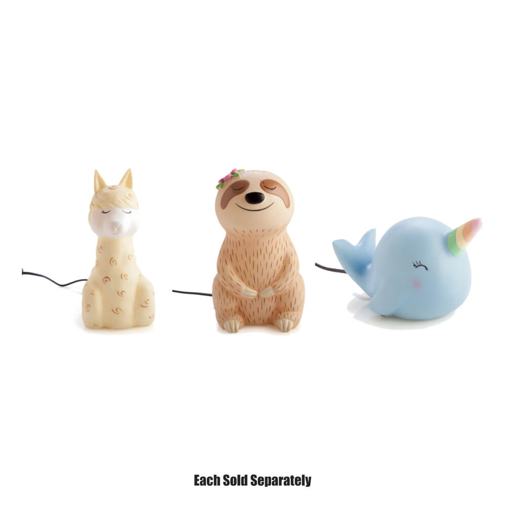 Coloca una de estas amigables lámparas de animales en cualquier habitación de tu hogar para aumentar instantáneamente ¡El carácter del lugar e instala un ambiente acogedor! Elija la lámpara de llama con una linda lana rizada que parece haberse quedado dormida y tiene pensamientos felices o la lámpara de perezoso con una bonita corona de flores. ¡Incluso el narval parece estar soñando dulcemente con cosas bonitas con una linda expresión y un cuerno de arcoíris en colores pastel!