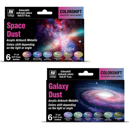 Los sets de la gama Colorshift contienen una selección de colores metálicos acrílicos para aerógrafo a base de agua.