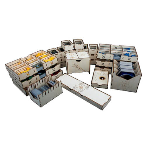 Twilight Imperium (Cuarta Edición) es un juego de conquista galáctica en el que de tres a seis jugadores asumen el papel de una de las diecisiete facciones que compiten por la dominación galáctica a través del poder militar, maniobras políticas y negociaciones económicas. Cada facción ofrece una experiencia de juego completamente diferente, desde los Fantasmas de Creuss que saltan agujeros de gusano hasta los Emiratos de Hacan, maestros del comercio y la economía. Nuestro Tesoro Crepuscular fue diseñado para mantener el juego en orden. Prepárate para jugar en menos de 5 minutos, ya que todo está perfectamente organizado dentro de tu caja de juego con este inserto.