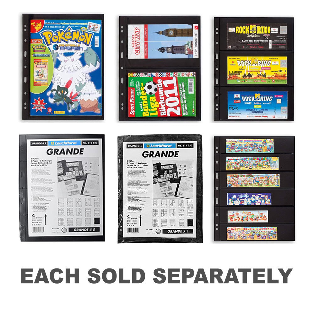 • Black plastic pocket sheets tailored for Leuchtturm Grande ring binders.