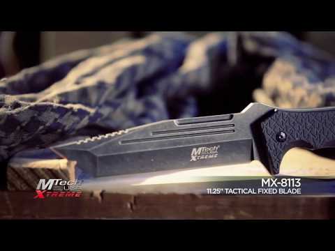 El hacha M-Tech USA con funda de nailon (negra) tiene una longitud total de 280 mm. Incluye funda de nailon, hoja de acero inoxidable, hoja satinada y mango con empuñadura de goma.