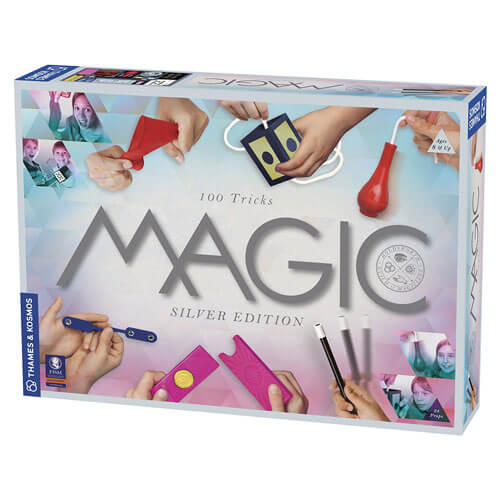 ¡Coge tu varita! Con accesorios mágicos de alta calidad e instrucciones ilustradas sencillas, los 100 trucos de magia de Magic Silver Edition se pueden aprender, practicar y dominar fácilmente, ¡para aturdir y sorprender al público! Los puntos aparecen y desaparecen en los trucos de remo. Haz que los naipes vayan y vengan y cambien de lugar. En los trucos con dinero, la moneda pierde valor, el dinero duplica su valor y las monedas desaparecen de una caja de monedas para luego reaparecer. ¡Las monedas pasan a través de pañuelos, desaparecen en el aire y mágicamente se quedan donde no deberían! El papel moneda desaparece y la leche aparece de la nada en trucos con tubos. En varios trucos se utilizan nudos y cuerdas: los nudos de las cuerdas se desatan, saltan de cuerda en cuerda y desaparecen. Una cuerda atraviesa objetos sólidos. Una botella flota en el aire. Una varita mágica rígida se vuelve flexible. Una varita mágica crece y se encoge, atraviesa objetos y emerge de una bolsa vacía. La varita mágica gira y levita. Fuerzas invisibles mueven la varita. La varita dice la hora.Ma