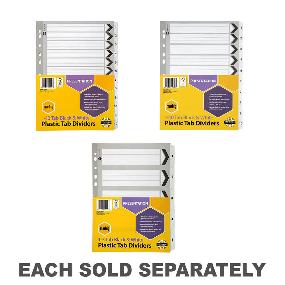 Estos separadores de pestañas reforzados de Marbig cuentan con 5 pestañas en blanco que le permiten organizar fácilmente sus archivos en secciones. Están hechos de tablero de manilla reforzado con lengüetas de plástico y tiras de encuadernación para mayor durabilidad. Incluye una página de índice para que puedas escribir específicamente lo que hay en cada categoría.