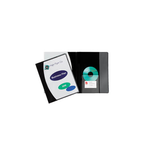 - Semi rígido con cubierta frontal transparente. Cubierta trasera interior con bolsillo vertical, soporte para CD y soporte para tarjetas de presentación.