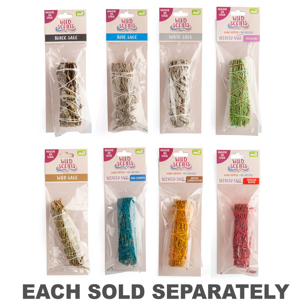 Palo para difuminar de salvia hecho a mano hojas y tallos de salvia blanca. Limpia y purifica tu espacio con su dulce aroma aromático. Fabricado en EE.UU.